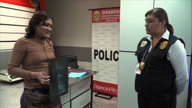 En el Aeropuerto Internacional de Lima descubren a una mujer cuando intentaba viajar tras tragarse 32 cápsulas de droga. En el interrogatorio los agentes descubren que las mafias de la droga han utilizado a esta mujer para intentar que traslade en su propio cuerpo la droga que luego quieren vender en el extranjero. El riesgo para la persona es máximo, pues si estas cápsulas se abrieran dentro de su cuerpo, podría morir.