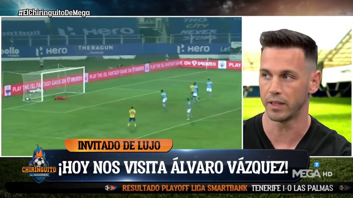 Álvaro Vázquez. Trotamundos de nuestro fútbol, un jugador que pasó por Espanyol, Getafe, Sporting, Zaragoza, Sabadell, u otros equipos y que hoy ha venido a visitar El Chiringuito.