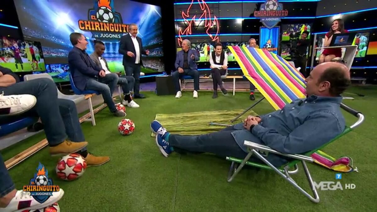 Juanma Rodríguez confesó no haber visto el partido de Messi por "estar viendo Salvados". Cristóbal Soria no dudo en responder al tertuliano madridista montando un 'Chiringuito' en el plató. Soria sacó una sombrilla, una toalla y una silla de playa.