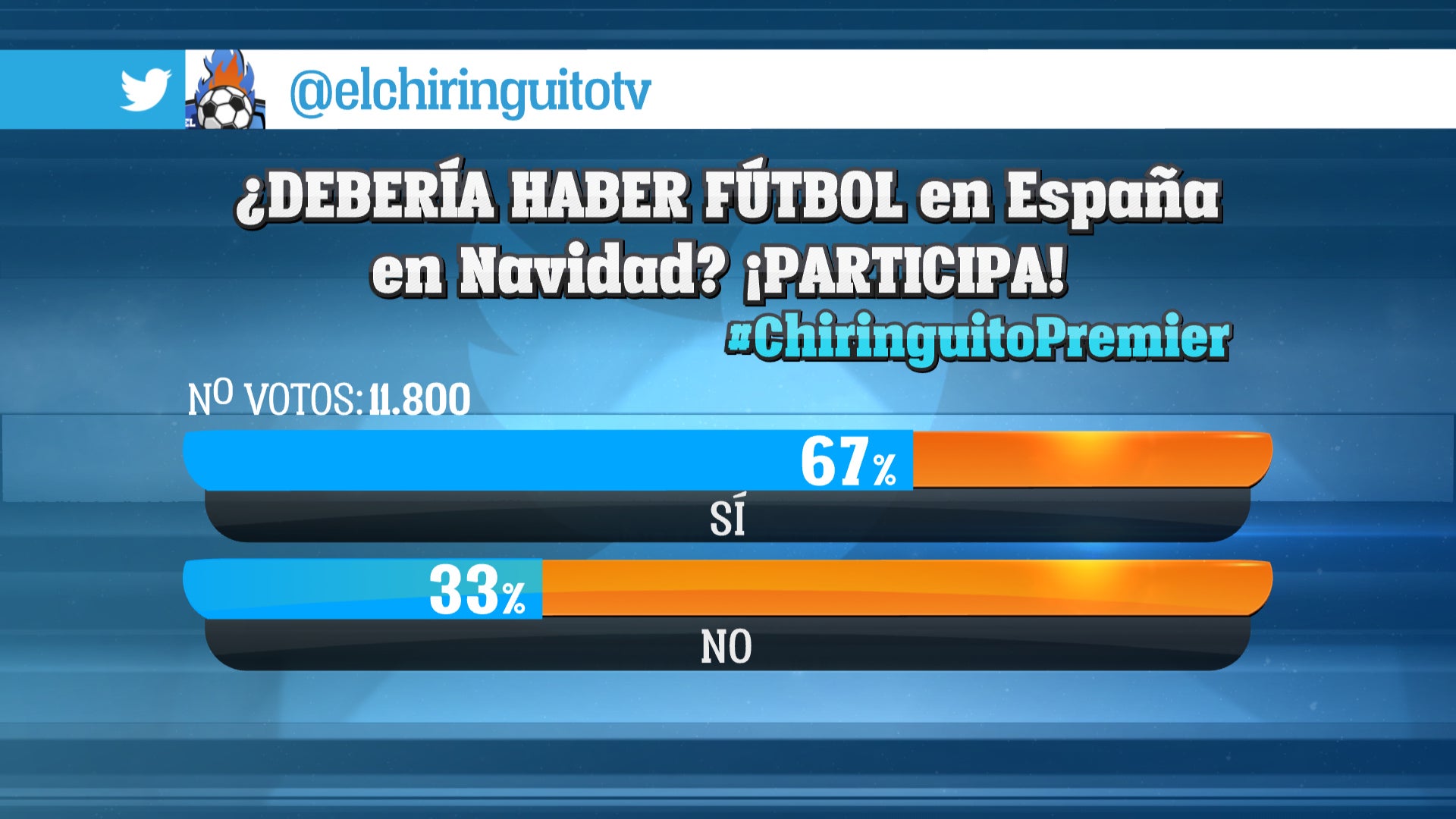 Tras unas navidades sin fútbol en España, planteamos en las redes sociales la pregunta de si debe haber fútbol en dicho periodo. Tras un total de 11.800 votos, se impuso el 'SÍ' con un 67% del total.