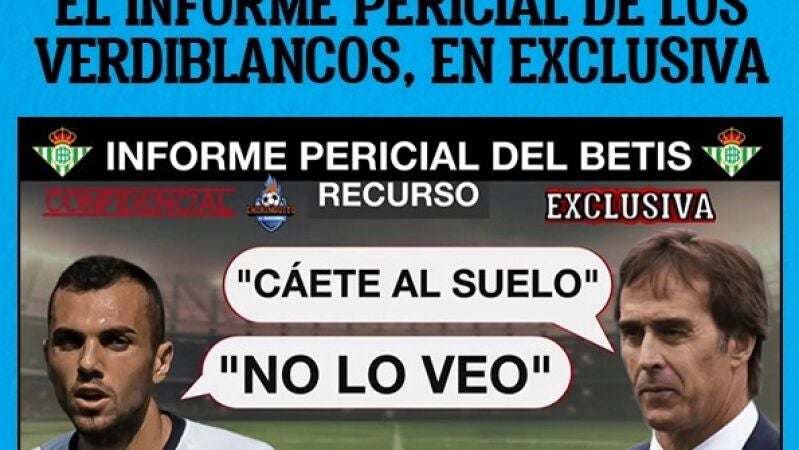 En primera instancia, el jugador se encontraba en perfectas condiciones, e incluso el médico le dijo que lo que tenía era minúsculo. Tras eso, el delegado del Sevilla le comunica algo a Lopetegui, y este al futbolista. Es entonces cuando comienza todo. "Cáete al suelo", dice el técnico, a lo que deja anonadado a Jordán. ¡Atención al informe pericial del Real Betis!