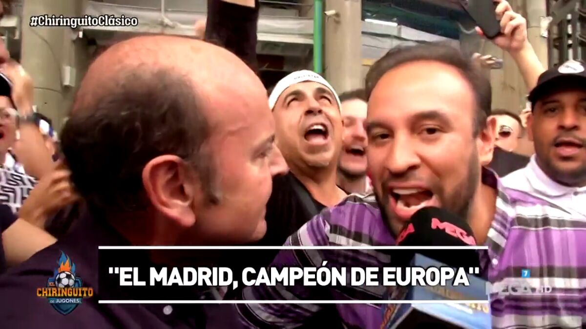 Victoria del Real Madrid en el Santiago Bernabéu, y como ya es tradición... puerta 55 de El Chiringuito para hablar con los aficionados madridistas. Ante la ausencia de Edu Aguirre, Juanma Rodríguez ha asumido la responsabilidad de hacer esta puerta 55, y el tertuliano madridista ha recibido el cariño de la afición.