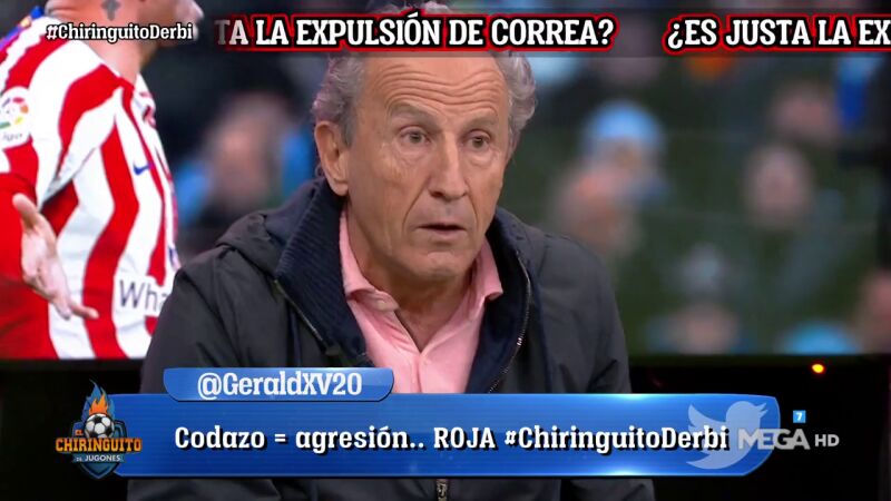 El tertuliano ha estallado en plató por el arbitraje de Gil Manzano en el Bernabéu, es el quinto derbi consecutivo en el que el Atlético acaba con 10 jugadores: "Esto sucede una y otra vez, una y otra vez, constantemente".