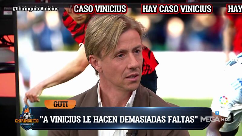 Guti ha defendido que los arbitrajes sobre Vinicius están siendo permisivos, pese a que no todas las faltas que recibe sean excesivamente duras, el tertuliano hace énfasis en la reiteración de éstas en cada jornada: "Cuando te hacen tres o cuatro seguidas, para eso está un árbitro, para sacar tarjeta amarilla".