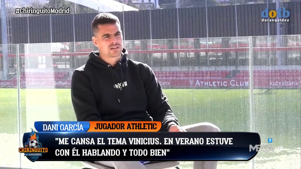 Con el tema Vinicius todavía candente, Dani García, jugador del Athletic Club ha dado su opinión sobre la situación del brasileño en los campos españoles: "Yo hubo un momento en el que, por la sobreexcitación, me pasé provocándole".
