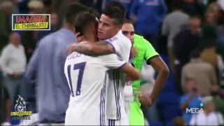 El colombiano James Rodríguez demostró ser una pieza importante dentro del vestuario del Real Madrid. Descubre las imágenes exclusivas de El Chiringuito sobre el partido del número 10 del equipo dirigido por Zidane.