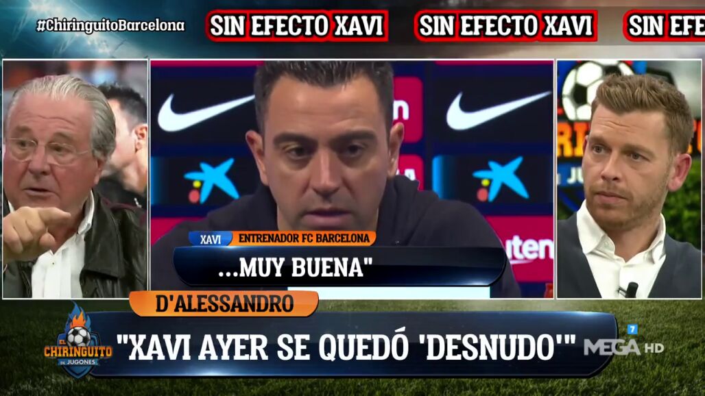 A pesar de la derrota y de la complicada realidad del Barcelona, Xavi Hernández ha querido defender en rueda de prensa el papel de su equipo y ha afirmado que el aficionado culé tiene motivos para irse orgulloso a casa. Jorge D'Alessandro ha explotado por las declaraciones del egarense, del que ha dicho que se quedó "desnudo", y ha denunciado que "mira a los demás por encima".