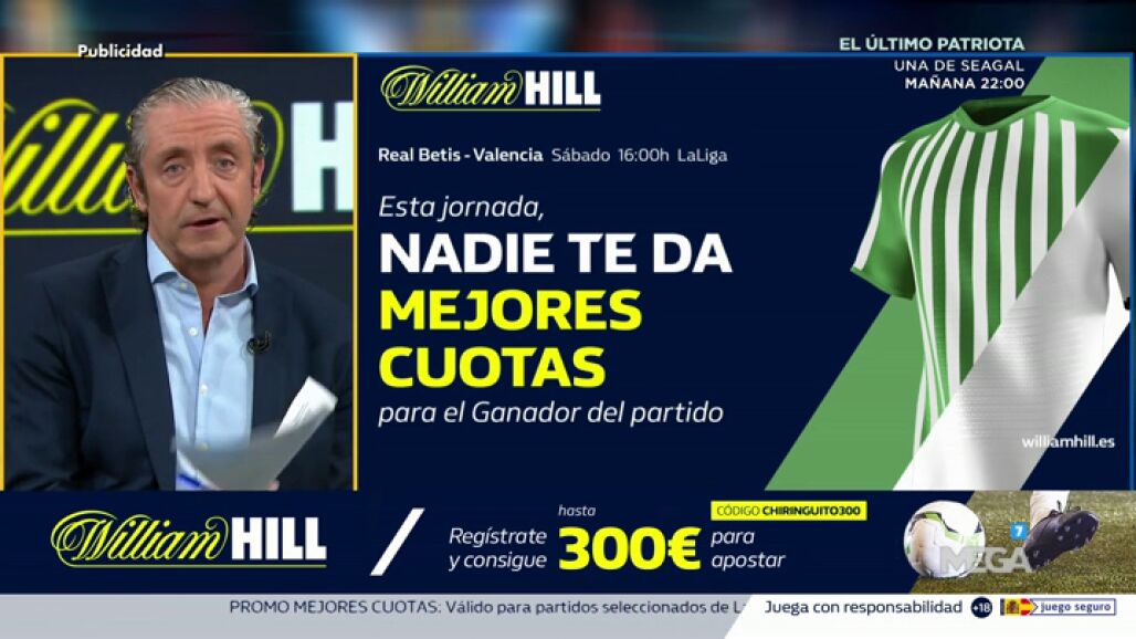 Josep Pedrerol te cuenta en 'El Chiringuito' la nueva súper oferta de registro en William Hill con el código CHIRINGUITO300.
