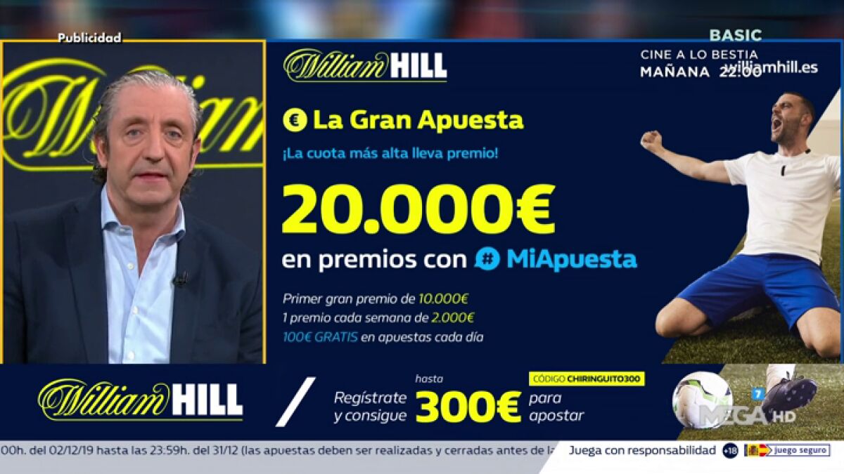 Josep Pedrerol te cuenta en 'El Chiringuito' la nueva súper oferta de registro en William Hill con el código CHIRINGUITO300.
