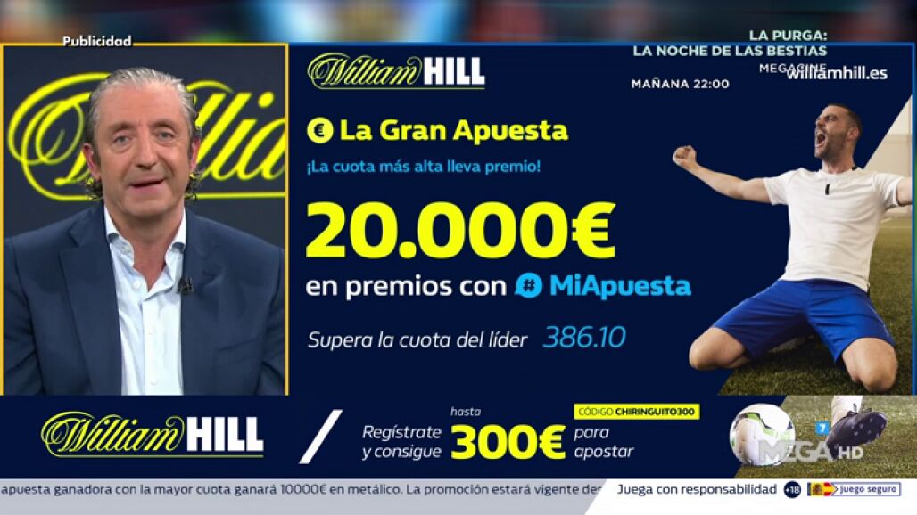 Josep Pedrerol te cuenta en 'El Chiringuito' la nueva súper oferta de registro en William Hill con el código CHIRINGUITO300.