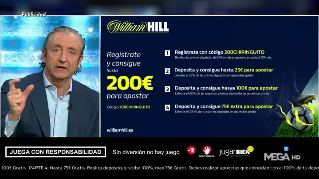 Josep Pedrerol te cuenta en 'El Chiringuito' la nueva súper oferta de registro en William Hill: utiliza el código 200CHIRINGUITO.