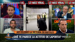 La euforia culé tras la victoria fue más allá. La imagen viral del momento la protagonizó el presidente del Barça, Joan Laporta. Fuera de sí, celebrando bajo brincos y cánticos el pase a los octavos de final. Juanfe tiene clara su visión: "Es dantesco". ¡Ojo a la imagen!