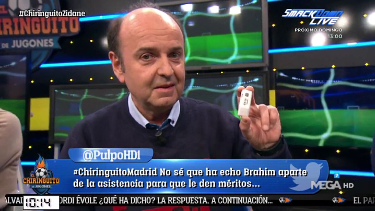 Juanma Rodríguez llegó a El Chiringuito de Jugones con un regalo muy especial. El tertuliano entregó a Josep Pedrerol un misterioso pendrive que contenía imágenes de la patada que Leo Messi dio a Esteban Granero en el pasado Barça-Espanyol.
