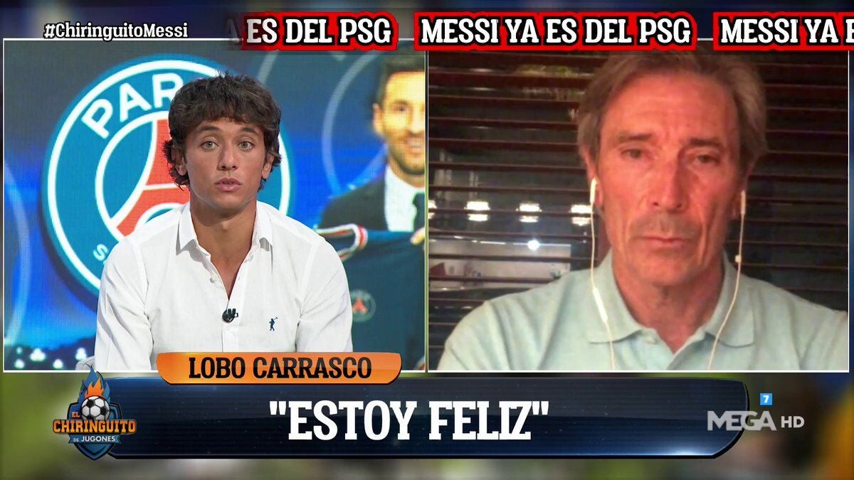 Messi ya es del PSG"ESTOY FELIZ"Lobo Carrasco muestra su entusiasmo ante la nueva etapa que se le abre a Messi en París con el PSG. Publicidad Mega» Programas» El Chiringuito de Jugones» Fútbol» Internacional» PSGPublicidad