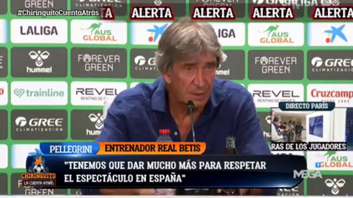 Manuel Pellegrini, entrenador del Real Betis, cree que el sentido del espectáculo no existe en España. "Aquí se juega el mejor futbol, pero en espectáculo tenemos que colaborar mucho más los técnicos, jugadores y árbitros, para cortar a los equipos que vienen a buscar el resultado", se sinceraba en rueda de prensa.