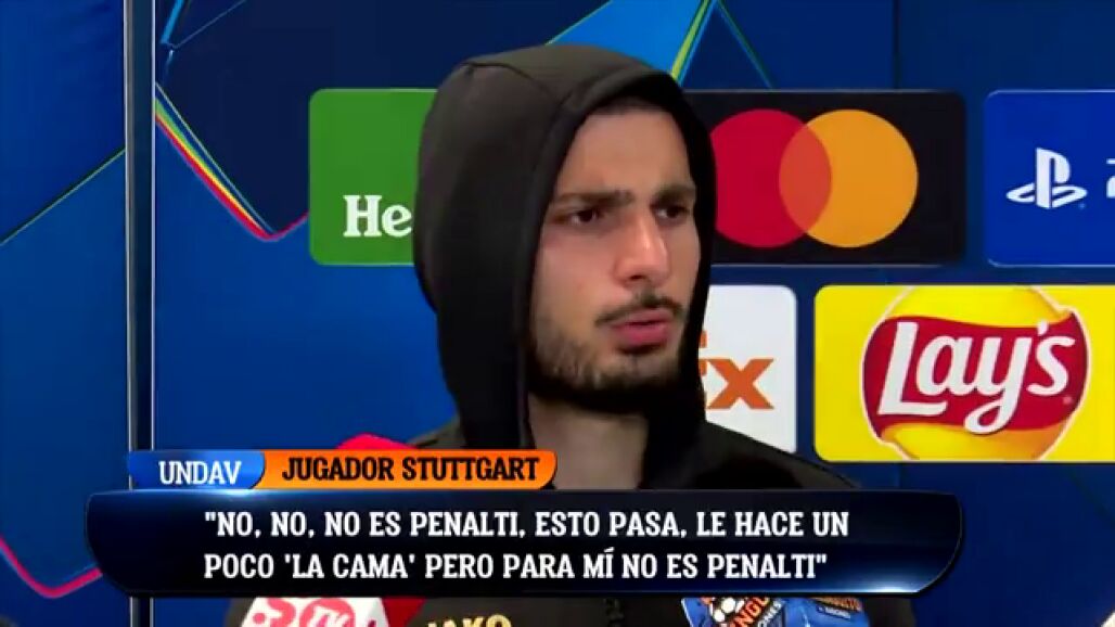 Deniz Undav atendió a Edu Aguirre, en zona mixta, tras la victoria del Madrid al Stuttgart en el Bernabéu donde habló al micrófono de El Chiringuito sobre el posible penalti de Rüdiger. "No, no es penalti. Esto pasa. Le hace un poco 'la cama' pero para mí no es penalti", afirmaba el delantero alemán. Edu Aguirre le volvió a mostrar el penalti y el propio jugador reafirmó que "nunca es penalti."