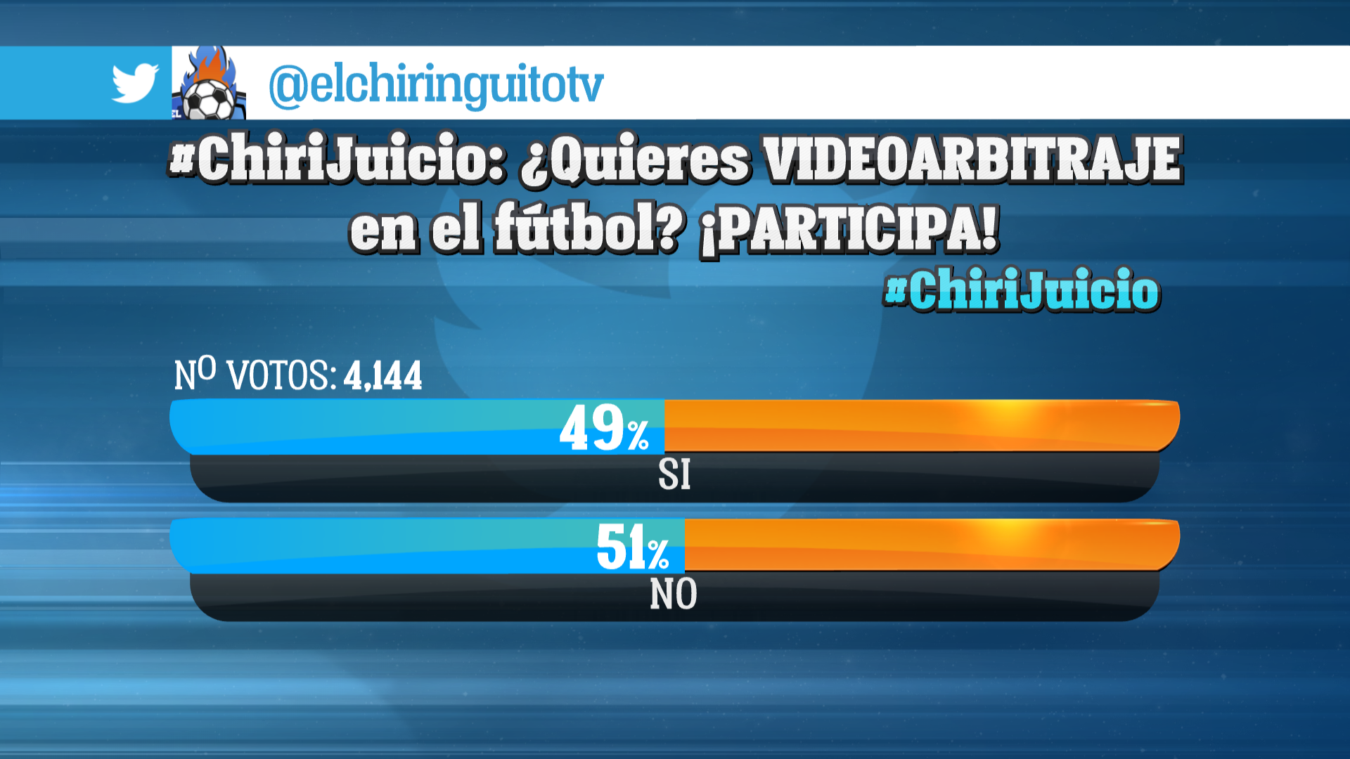 Tras la polémica generada con el videoarbitraje en el Mundialito de Clubes, lanzamos la pregunta en redes sociales. El 'NO' se impuso con un 51% del total de los votos. La encuesta tuvo una participación de 5.144 votos.
