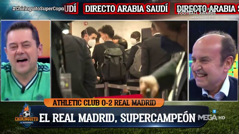 El Real Madrid le ha ganado la final de la Supercopa al Madrid y los tertulianos le han cantado el himno blanco a Edu Velasco.