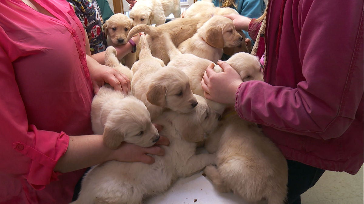 La cita más mona del día: Revisión general para 13 cachorros de Golden Retriever