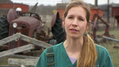 La doctora Emily ha tenido que acudir a una granja por un parto que se ha complicado de un ternero.