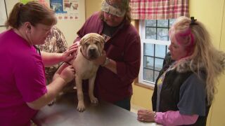 Este shar pei sufre graves lesiones tras ser atropellado por un camión.