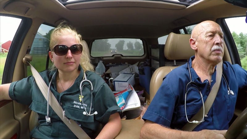 La doctora Nicole se incorpora a la plantilla del doctor Pol recién terminada la carrera. Es todo un desafío para esta joven veterinaria que hoy tiene su primera salida con el 'jefe'. Uno de los lugares a visitar es la clínica de dale donde deberán comprobar cuántas vacas están preñadas y cuántas no. "Estaba muy nerviosa porque él iba detrás de mí comprobando lo que yo decía", asegura la nueva veterinaria Nicole. El doctor Pol parece encantado: "me gusta traer a estudiantes nuevos que han demostrado mucho interés".