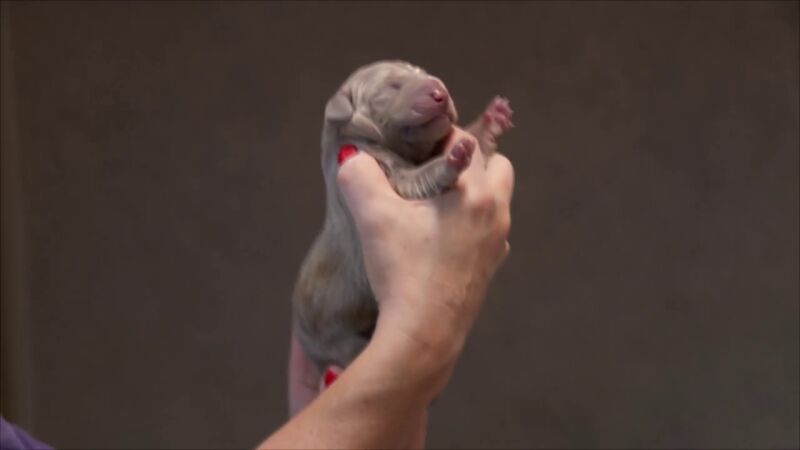 Una Braco de Weimar está teniendo complicaciones en su tercer parto. La dueña ha decidido traerla a la consulta del Dr. Pol porque ha empezado a expulsar sangre y teme que pueda necesitar una cesárea. Sin embargo, el parto está yendo según lo previsto y la dueña se va a llevar a casa cuatro preciosos cachorros.