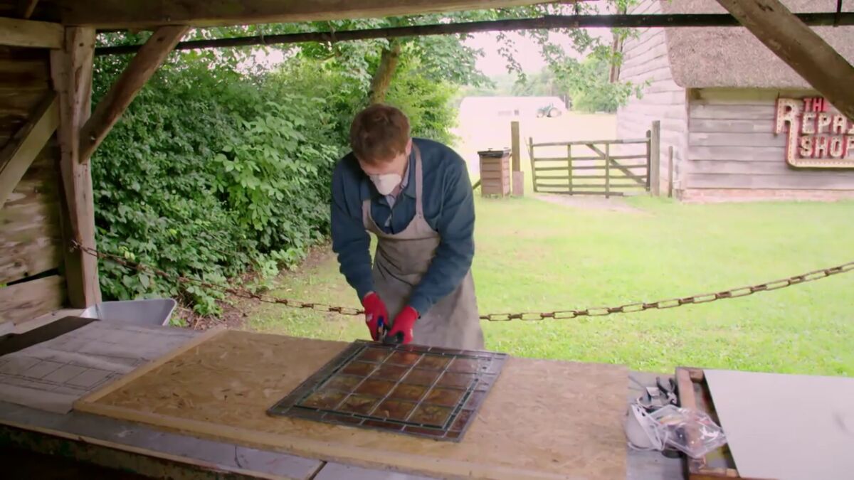 El restaurador repara los trozos que tiene rotos y agrietados. Uno de los objetivos principales es que la luz pase a través del cristal. Para arreglarlo, tiene que calcar el dibujo y trabajar sobre la plantilla. Uno de los retratos que está roto, exige hacer una replica exactamente igual para poder repararlo. Lo más difícil de este trabajo es que, a la hora de meter el vidrio en el horno para que la imagen quede permanente, nunca se sabe como actuará el cristal con el calor.