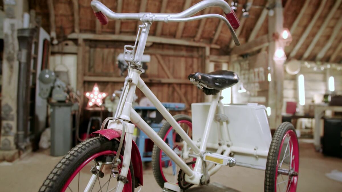 El triciclo clásico de la década de los 40, un objeto de la niñez bastante maltratado. Este objeto lo utilizaba su dueña cuando era pequeña por la granja familiar y ahora lo quiere restaurar para regalárselo a su nieto Thomas. Con el paso del tiempo y tantos años de uso, Thomas no puede montarse en él porque está muy oxidado. Este triciclo fue el regalo de navidad de 1954 y fue uno de los modelos más vendidos de aquella época.