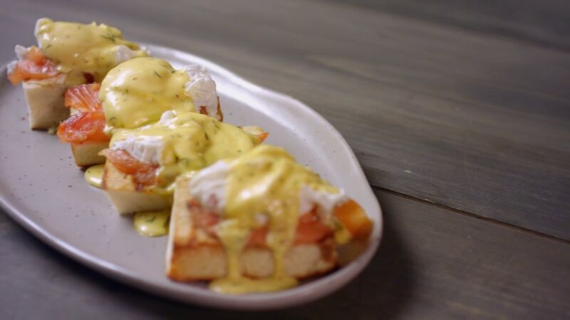 La chef enamora a los jueces con su salmon ahumado con huevos benedictinos acompañado de salteado de patatas con beicon ahumado y alubias a la bras, para terminar crepe de naranja, bourbon y melocotón. Por otro lado, Hugh realiza frittata de champiñones a la parrilla acompañado de ensalada de aguacate y bacalao ahumado y tostada francesa con sirope de arce y mora, de postre macedonia a la parrilla con crema de arce.