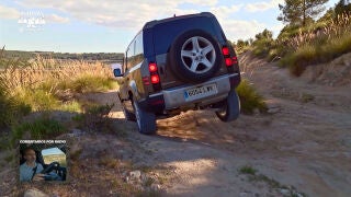 El Land Rover Defender se queda a dos ruedas intentando llegar a la meta