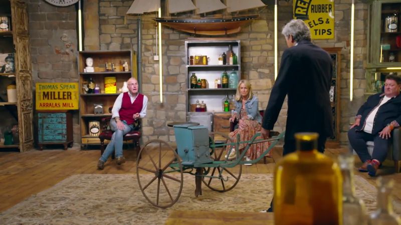Esta mujer ha traído lo que aparenta ser un carruaje. Lo consiguió hace bastante años en la venta de un granjero. Estaba haciendo limpieza de sus cosas y decidió venderlas. Se encontraba lleno de polvo y en mal estado, pero tras una limpieza quedó como nuevo. Pagó por el 100 libras. El objeto ahora está en buen estado, con su conservación original. Los pujadores darán una buena suma por el, 160 libras. ¿Para que servirá este objeto?
