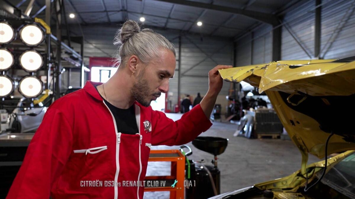 Ante ellos tienen un Citroën DS3 con la delantera destrozada y la trasera hundida; y un Renault Clio sin interior, ni volante ni asiento ni motor.